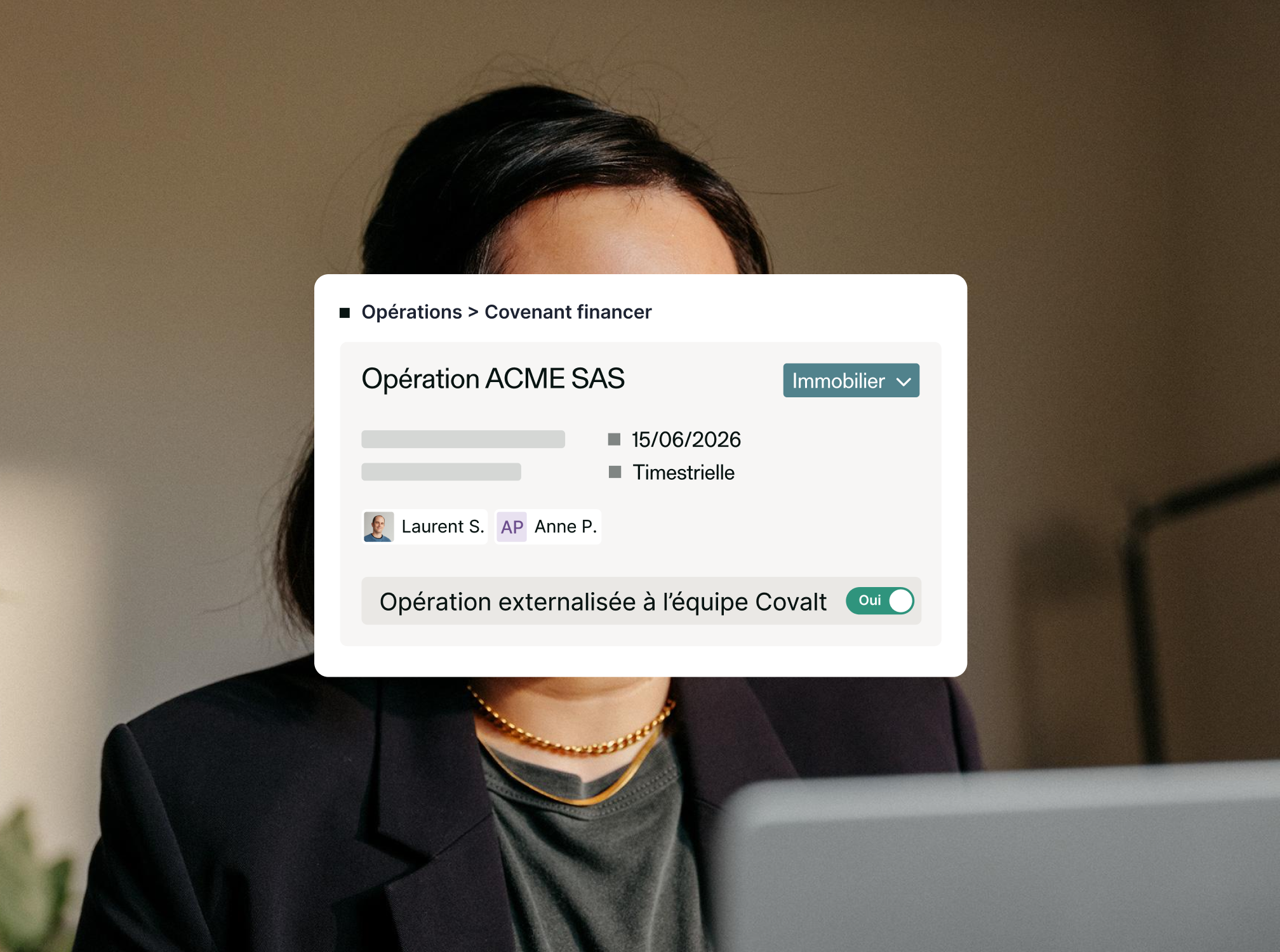 "Le suivi des covenants et des sûretés est un levier important de maîtrise du risque dans notre activité, mais il mobilisait jusqu’ici beaucoup de ressources. Avant Covalt, nous fonctionnions avec des rappels manuels (emails, téléphone) et des tableaux Excel. Depuis, tout est centralisé sur une plateforme collaborative et les rappels sont automatisés. Nous recevons des alertes précises à chaque échéance, ce qui nous permet d’être proactifs et de ne rien louper dans le suivi de nos financements."